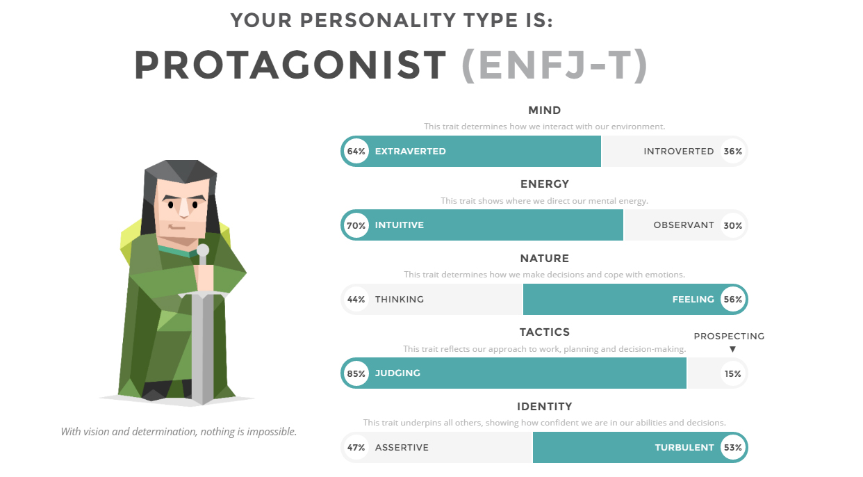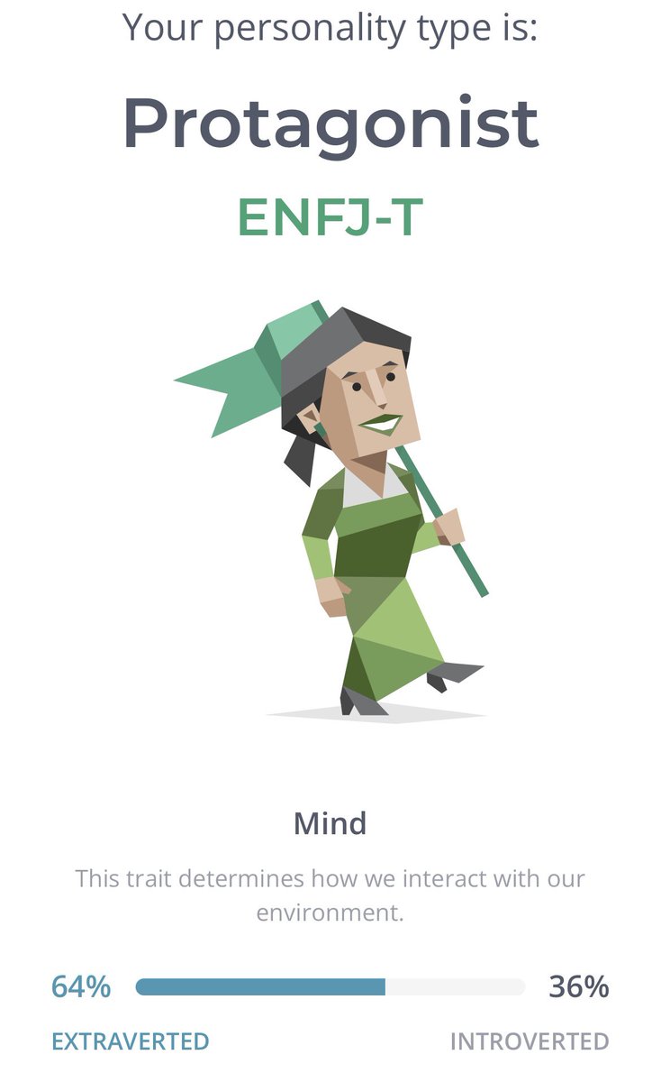 성격 유형 검사(MBTI, 16 Personalities, TRUITY 등)에서 통용되는 16가지 유형 중 ENFJ 유형은 전 세계 인구의 2.5퍼센트 남짓으로 잘 안보이는 유형이며, 대한민국에서도 0.9퍼센트 미만으로 보기 힘든 유형이고요.