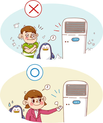 실내와 실외의 온도차가 꽤 많게 나면 좋지 않으며 5~6도 내외로 맞추는 것이 좋으며 에어컨의 바람을 직통으로 맞지 않도록 바람의 강령을 조절하는는편이 좋다고해요.