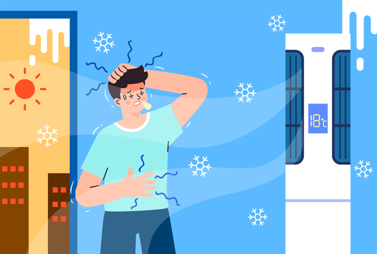 냉방병은 실내 온도가 사납게 낮아지거나 추운 공간에서 난데없는 바깥쪽 기온의 변환로 발생할수 있다하며 보통 냉방기나 오랜 시간 에어컨을 틀어 놨을 경우 일어날 수니다.